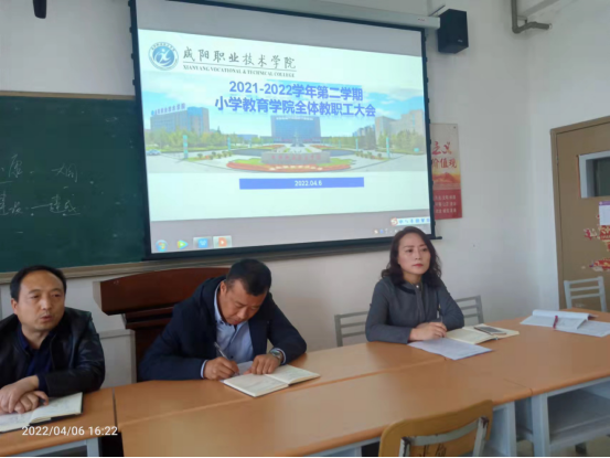 2022年4月6日下午,js33333金沙线路检测在教学楼722室召开了全体教职工大会,会议由韩向阳主持。